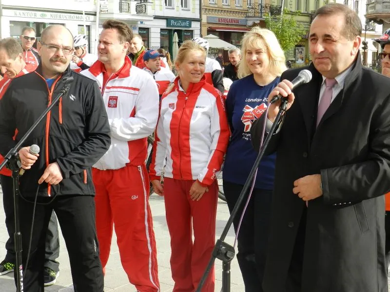 - Jesteście przykładem, że mieszkańców naszego miasta stać na bezinteresowną pomoc - mówi do uczestników maratonu prezydent Janusz Żmurkiewicz. (fot. H. Lachowska UM)