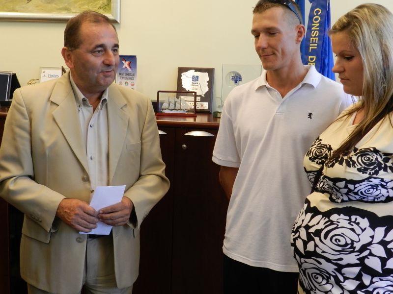Na zdjęciu: Krzysztof Ostrowski z narzeczoną Anią podczas spotkania z Prezydentem Januszem Żmurkiewiczem (fot. H. Lachowska/UM/archiwum)