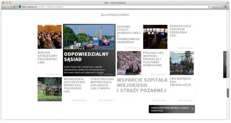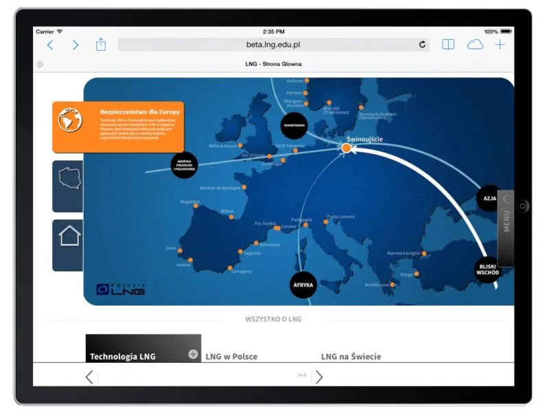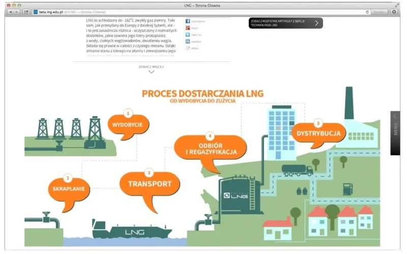 Informacje o skroplonym gazie ziemnym, jako jednej z najnowocześniejszych i najbardziej innowacyjnych technologii energetycznych, przyjaznej środowisku i efektywnej ekonomicznie, zostały przedstawione internautom w bardzo przystępny sposób. Portal wykorzystuje nowoczesne i interaktywne narzędzia, formy animacji i prezentacji treści.