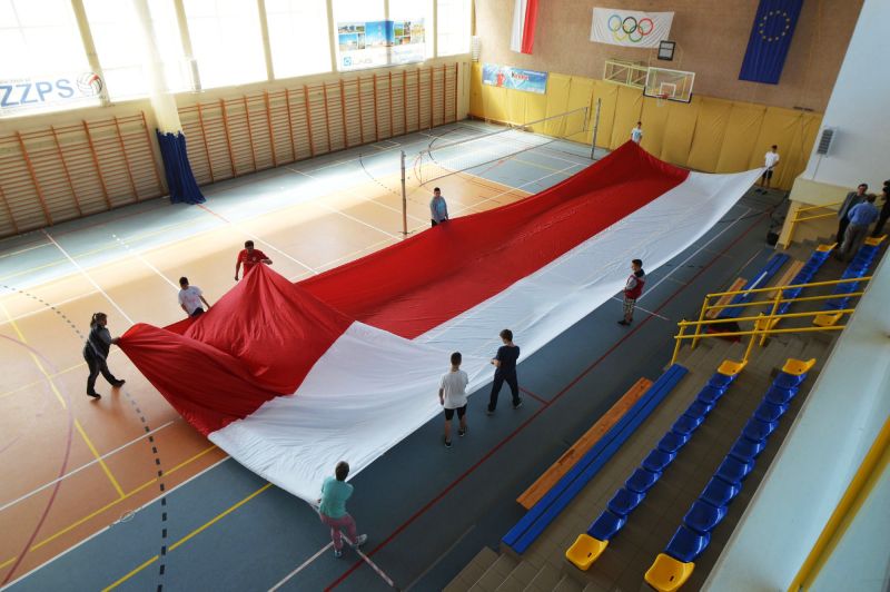 Tak wielkiej flagi narodowej w Świnoujściu jeszcze nie było! Ma 300 metrów kwadratowych. Aby ją uszyć, krawcowe pracowały nieustannie przez 18 godzin. Zwróciły się o pomoc w złożeniu „biało-czerwonej” do uczniów gimnazjum przy ul. Witosa. - Jest tak ogromna, że musieliśmy to zrobić w hali gimnastycznej – mówi Ewa Nowakowska, krawcowa . Flaga zawiśnie 2 maja na latarni morskiej.
