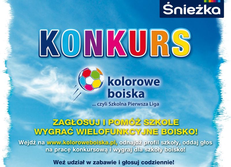 Uczniowie Szkoły Podstawowej Nr 2 w Świnoujściu proszą o pomoc w wygraniu konkursu „Kolorowe boiska… czyli Szkolna Pierwsza Liga”. Główną nagrodą jest nowe boisko. Głosuj na http://koloroweboiska.pl/szkola-podstawowa-nr-2/ Szkoła Podstawowa Nr 2 jako jedyna ze Świnoujścia startuje w tym konkursie.