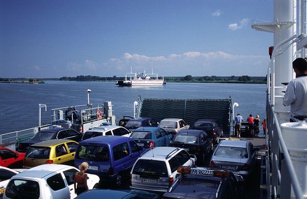1). W przypadku wystąpienia kolejek na przeprawie promy kursują