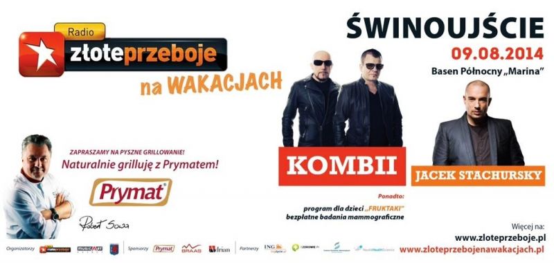 Kombii oraz Jacek Stachursky będą gwiazdami koncertu Radia Złote Przeboje, który odbędzie się w najbliższą sobotę 9 sierpnia 2014 na terenie portu jachtowego. Początek o godz. 16.00. Będą też inne atrakcje, jak grillowanie ze znanym kucharzem Robertem Sową, program dla dzieci „Fruktaki”. W namiocie obok sceny od 12.00 do 18.00 organizatorzy czekają na fanów programu telewizyjnego „Jaka to melodia”.