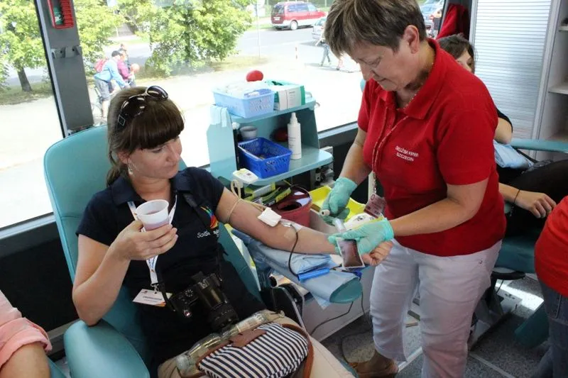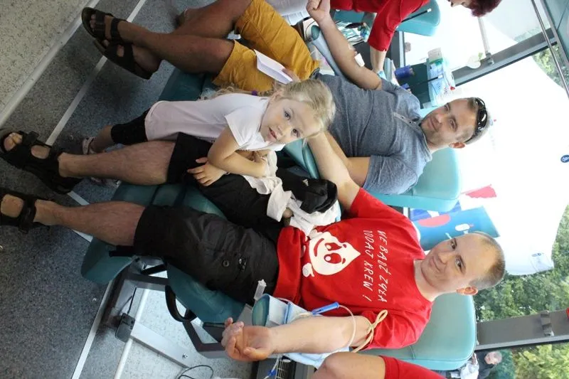 Punktualnie o godz. 11.00 rozpoczęła się donacja. Od razu ustawiła się kolejka dawców a na jej czele członkowie HK HDK „Kropla Życia”, bo przykład osobisty jest najważniejszy. Pogoda nam dopisała więc sporo ludzi przemieszczało się na nabrzeże portowe, gdzie odbywały się przedsięwzięcia programowe Sail Świnoujście. Harcerki rozdawały ulotki dorosłym, baloniki dzieciakom i tym sposobem co chwila ktoś podchodził do naszych stolików, gdzie można było wypełnić ankietę przed donacją. Podobnie jak w ubiegłym roku przy podobnej akcji, tak i tym razem krew oddawały mamy i ojcowie z dziećmi, które im kibicowały, narzeczona z narzeczonym i mamy z córkami. I tak nam zleciało aż do 16.00. Po podsumowaniu okazało się, że krew oddało 56 dawców, co przełożyło się na 25,2 litra krwi pełnej. Wspaniale! W imieniu organizatorów serdecznie dziękuję wszystkim honorowym krwiodawcom za dar krwi. Dziękuję Urzędowi Miasta za zaufanie a Fundacji Banku PKO BP za wsparcie. Szczególne podziękowania należą się personelowi RCKiK Szczecin za profesjonalizm i wspaniałą rodzinną atmosferę. Udała się nam ta impreza. Do zobaczenia na kolejnej akcji!