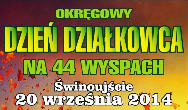 W sobotę 20. września 2014 r. na placu Mickiewicza (przy urzędzie miasta) odbędzie Okręgowy Dzień Działkowca na 44 Wyspach. Początek o godzinie 11.00. Będzie można nie tylko podziwiać tegoroczne, wspaniałe plony świnoujskich działkowców, ale też spróbować wyspiarskiej zupy jarzynowej, pieczonego dzika czy posłuchać porad ogrodniczych specjalistów.