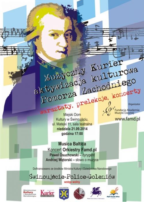 Muzyka, na którą składają się dźwięki odczuwalne niemal fizycznie, która jest wyższym objawieniem niż cała mądrość i jakakolwiek filozofia, która pozostaje, gdy umilknie… Zapraszamy na wyjątkowy koncert pt. „Musica Baltica”, w wykonaniu Orkiestry Famd.pl pod dyrekcją Pawła Osuchowskiego. Już 21 września, o godz. 17.00, w Sali Miejskiego Domu Kultury. Wstęp na bezpłatne dwuosobowe zaproszenia. Zaproszenia dostępne od 10 września w Miejskim Domu Kultury (pon. - pt. w godz. 8.00 - 15.00) oraz Galerii Art (wt. - sob. w godz. 12.00 -18.00)