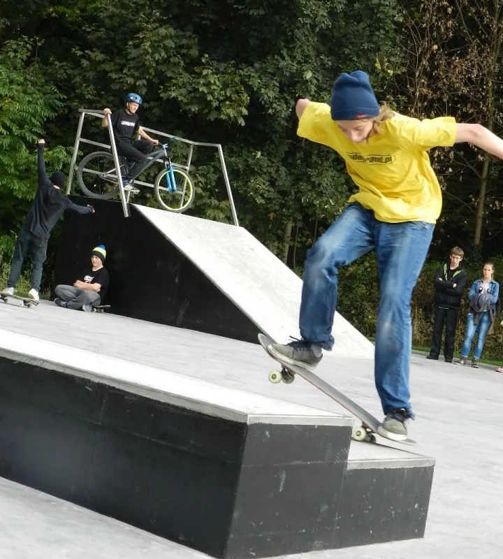 Płyta nowego skate parku to ponad 500 metrów kwadratowych. Zamontowanych jest w sumie pięć różnych urządzeń. Co bardzo ważne – wszystkie wykonane są z żelbetonu, a więc wyjątkowo trwałego materiału. Skate park znajduje się przy ulicy Matejki, koło boiska ze sztuczną nawierzchnią, amfiteatru i kortów tenisowych.
