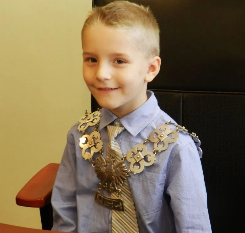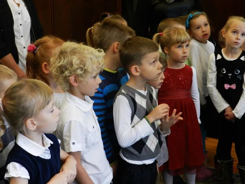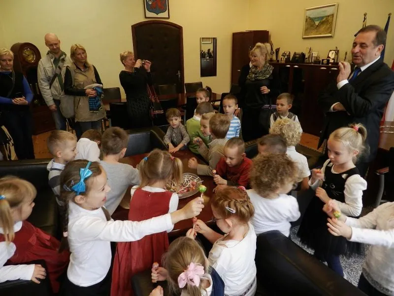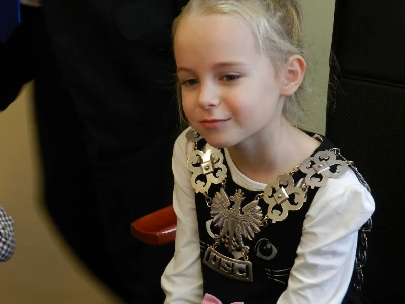 Największe zainteresowanie dzieci wzbudził prezydencki łańcuch. Prezydent po kolei zakładał go maluchom, które niektóre z dumą, a niektóre trochę zawstydzone siadał na fotelu przy biurku prezydenta. Jedna z dziewczynek zainteresowała się zdjęciem, które stoi na biurku.