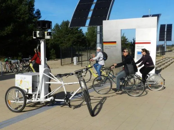 Trójkołowy pojazd „najeżony” był aparaturą, która wykonywała panoramiczne zdjęcia. Na system składa się m.in. kilka aparatów fotograficznych osadzonych wokół metalowego słupa, zamontowanego na skrzyni za siedzeniem rowerzysty. Do aparatów wykonujących tysiące zdjęć, dodatkowo podłączony jest niewielki generator prądu.