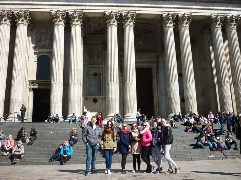 Pod pałacem obejrzeliśmy uroczystą zmianę warty przy akompaniamencie orkiestry. W dniu naszej wizyty królowej nie było w pałacu. Zwiedziliśmy Tower Bridge, Londyńskie City. Od Tower skierowaliśmy się w stronę centrum, po drodze stare kamienice przeplatały się z nowoczesnymi biurowcami. Dotarliśmy do Monument London, zbudowanego na pamiątkę wielkiego pożaru z 1666 r. Na górę można było wejść po 311 schodkach. Duże wrażenie zrobiła na nas Katedra Świętego Pawła z okrągłą kopułą, na którą prowadzi ponad 600 schodków. Kolejnym miejscem, które zwiedzaliśmy była National Gallery, która prezentuje zbiory malarstwa z lat 1250 -1900. Galeria posiada dużą kolekcję impresjonistów i kilkanaście dzieł van Gogha, min. Słoneczniki. Pozostali artyści, których wybitne dzieła mogliśmy podziwiać, to: Leonadro da Vinci, Rembrandt, Tycjan, Sandro Botticelli, Jan van Eyck. Claude Monet, Diego Vellasquez, Renoir i wielu innych.