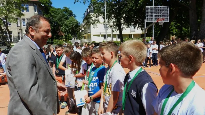 Fanfarami zostali przywitani na szkolnym boisku zwycięzcy i zdobywcy brązowego medalu tegorocznych rozgrywek Mini Mundial 2015 zawodnicy z SP-1 i SP-6 . W prawdziwie mistrzowskiej oprawie z zawodnikami ich trenerami, opiekunami, dyrekcją nauczycielami, rodzicami i kolegami ze szkół spotkali się dziś Prezydent Świnoujścia Janusz Żmurkiewicz, Zastępca Prezydenta Paweł Sujka, Skarbnik Miasta Iwona Górecka - Sęczek oraz Naczelnik Wydziału Edukacji Janina Śmiałkowska.
