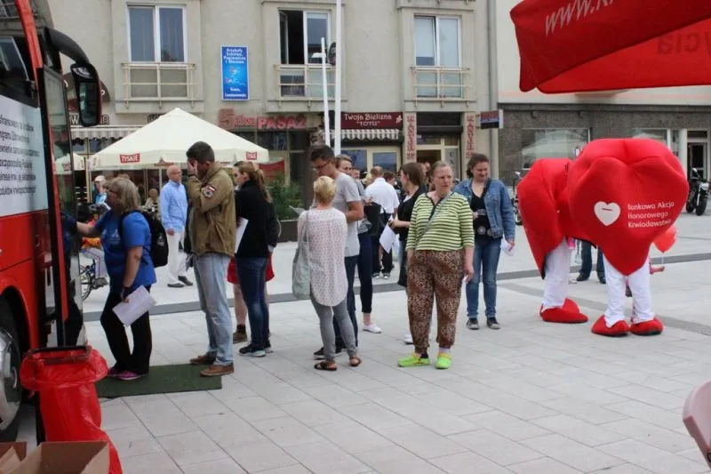 Niemal przez całą niedzielę na placu Wolności odbywała się akcja poboru krwi z okazji Światowego Dnia Krwiodawcy. Wszystko poszło zgodnie z planem, no może za wyjątkiem pogody (deszczyk nas nie oszczędził). Punktualnie od 10.00 rozpoczął działanie ambulans i od razu ustawiła się kolejka dawców. Oczywiście jako pierwsi krew oddali organizatorzy czyli członkowie Harcerskiego Klubu HDK „Kropla Życia”.