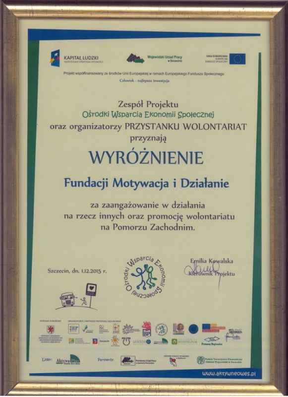 Fundacja Motywacja i Działanie wyróżniona