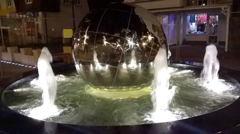 Centralną częścią fontanny jest ogromna stalowa kula o średnicy 2 metrów, która imituje kulę ziemską z zaznaczonym miejscem, gdzie leży Świnoujście. Burty podstawy wykonane są z granitowych bloków. Koszt fontanny to 399 tys. złotych.