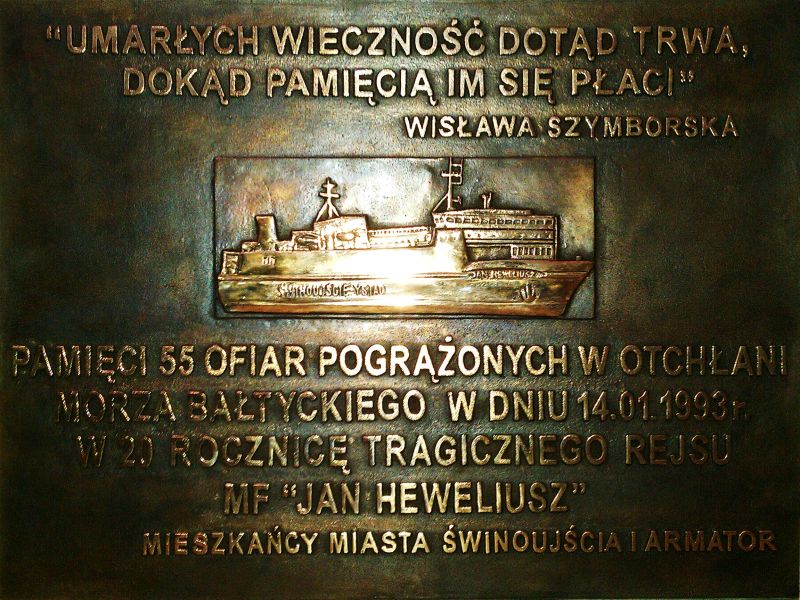 Prom samochodowo – kolejowy „Jan Heweliusz” zatonął 14 stycznia 1993 roku na Bałtyku, w czasie rejsu ze Świnoujścia do Ystad w Szwecji. Na morzu szalał sztorm, prędkość wiatru dochodziła do 160 km na godzinę. Po godzinie 4.00, znajdując się około 15 mil od przylądka Arkona na niemieckiej wyspie Rugia, statek przewrócił się na burtę, a następnie stępką do góry i po kilku godzinach zatonął. W tej największej powojennej morskiej tragedii, z udziałem polskiego statku, zginęło 55 osób – 20 marynarzy i 35 kierowców.