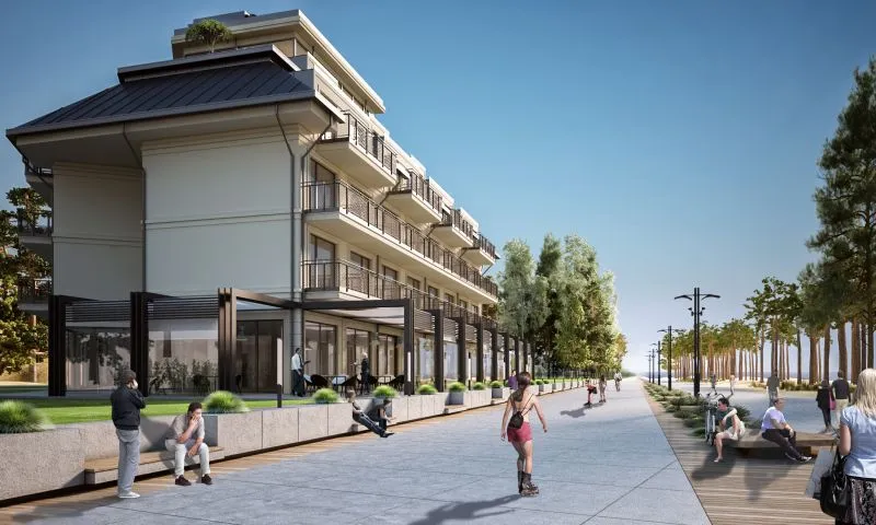 W zamian jednak spółka wzięła na siebie zagospodarowanie tego terenu, czyli stworzenie ogólnodostępnej drogi dojazdowej do obiektów, a także część promenady biegnącej wzdłuż działek, zgodnie z wytycznymi narzuconymi przez Urząd Miasta. Wybuduje więc ścieżkę spacerową i rowerową wraz z oświetleniem, klombami kwiatowymi, zieleńcami itp. To nie koniec. Dodatkowo spółka zobowiązała się także do stworzenia ścieżki (będącej przedłużeniem drogi dojazdowej) prowadzącej bezpośrednio na plażę. Przy ścieżce wybuduje ogólnodostępny budynek sanitarny wyposażony w toalety, umywalki itp. Aktualny, szacowany koszt inwestycji wynosi około 15 mln złotych.