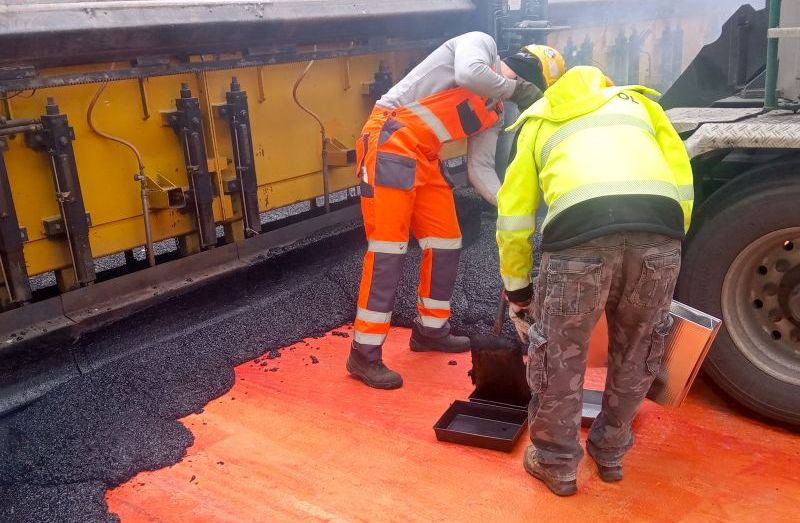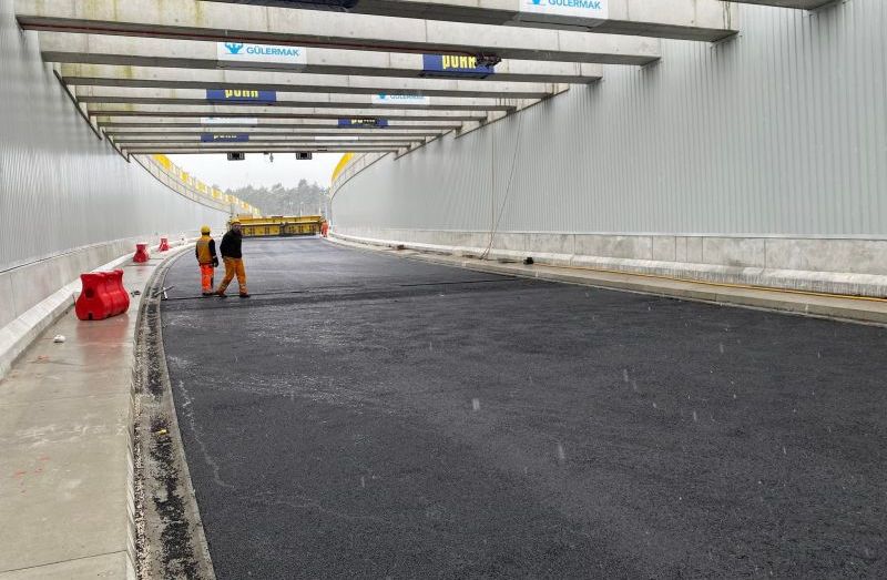 W tunelu kładą pierwszą warstwę asfaltu. Zobacz zdjęcia.