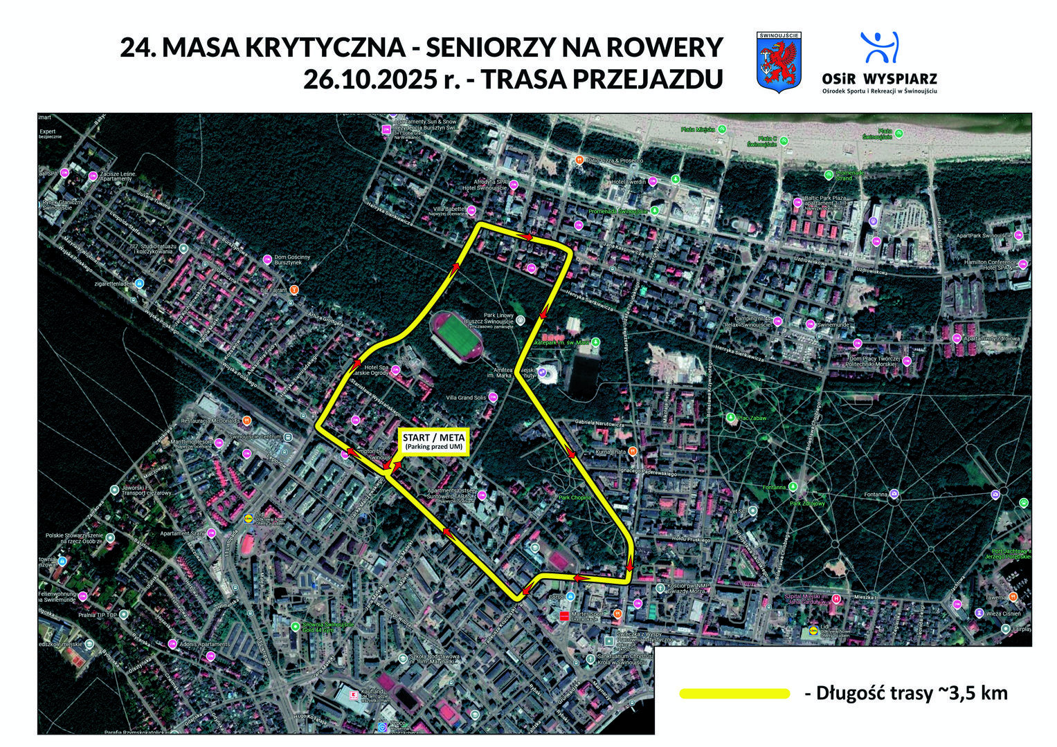 Start i meta wydarzenia znajdą się tradycyjnie na Placu Adama Mickiewicza przy Urzędzie Miasta Świnoujście. Biuro Masy Krytycznej będzie czynne od godziny 10:30 do 11:30, a dla pierwszych uczestników przygotowano bezpłatne koszulki – ich liczba jest jednak ograniczona, więc warto pojawić się wcześniej. Start przejazdu zaplanowano na godzinę 11:45, a trasa, której długość wynosi około 30 minut, dostępna jest na stronie www.osir.swinoujscie.pl