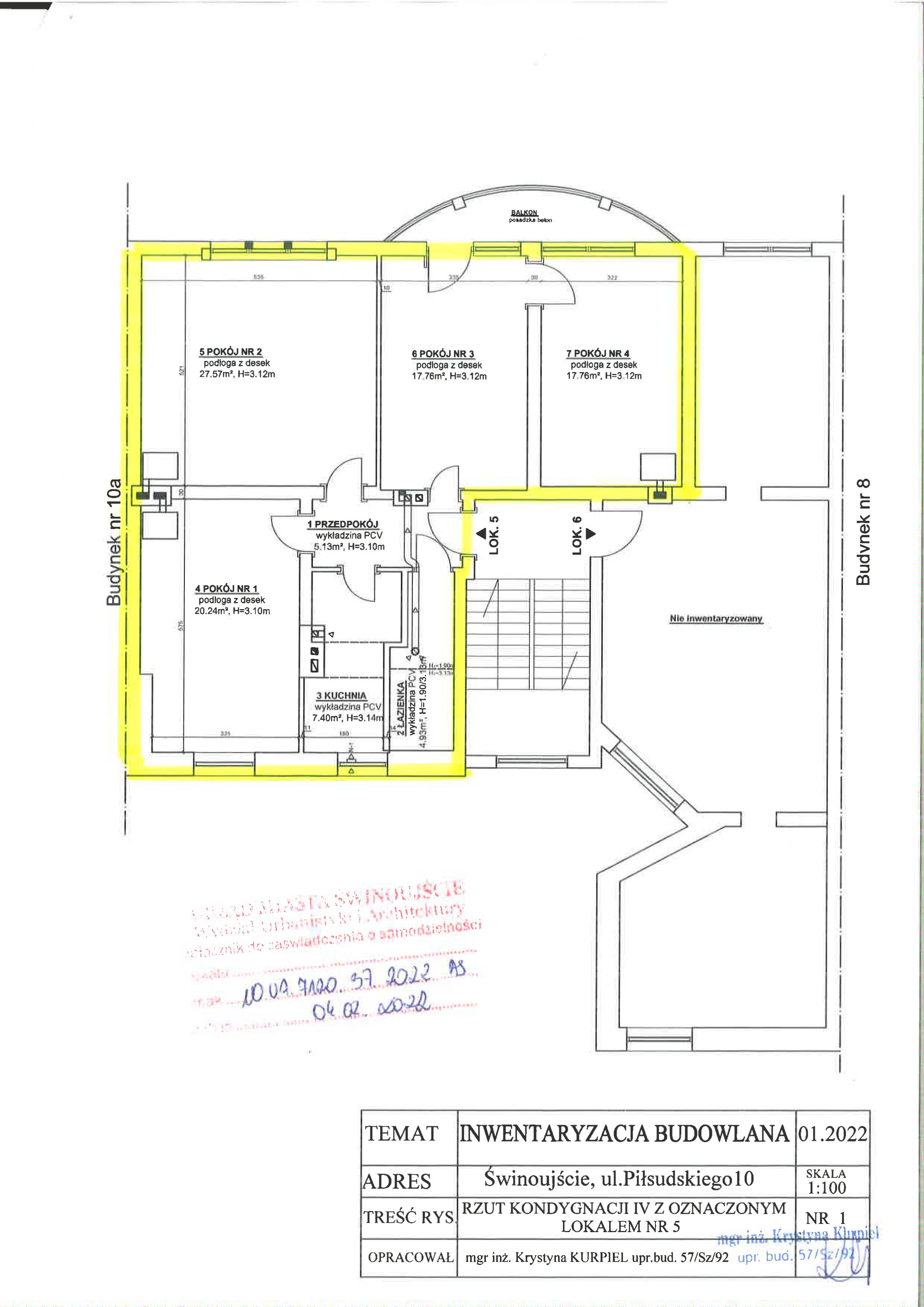 Nieruchomość stanowiąca lokal mieszkalny położony przy ul. Hołdu Pruskiego 11/5a Powierzchnia lokalu: 67,70 m2 Cena brutto: 700 000 zł cenę nieruchomości wpisanej do rejestru zabytków obniża się na wniosek nabywcy o 50% Ogłoszenie o przetargu Rzut lokalu Zdjęcia lokalu opublikowano 2025-10-09 |