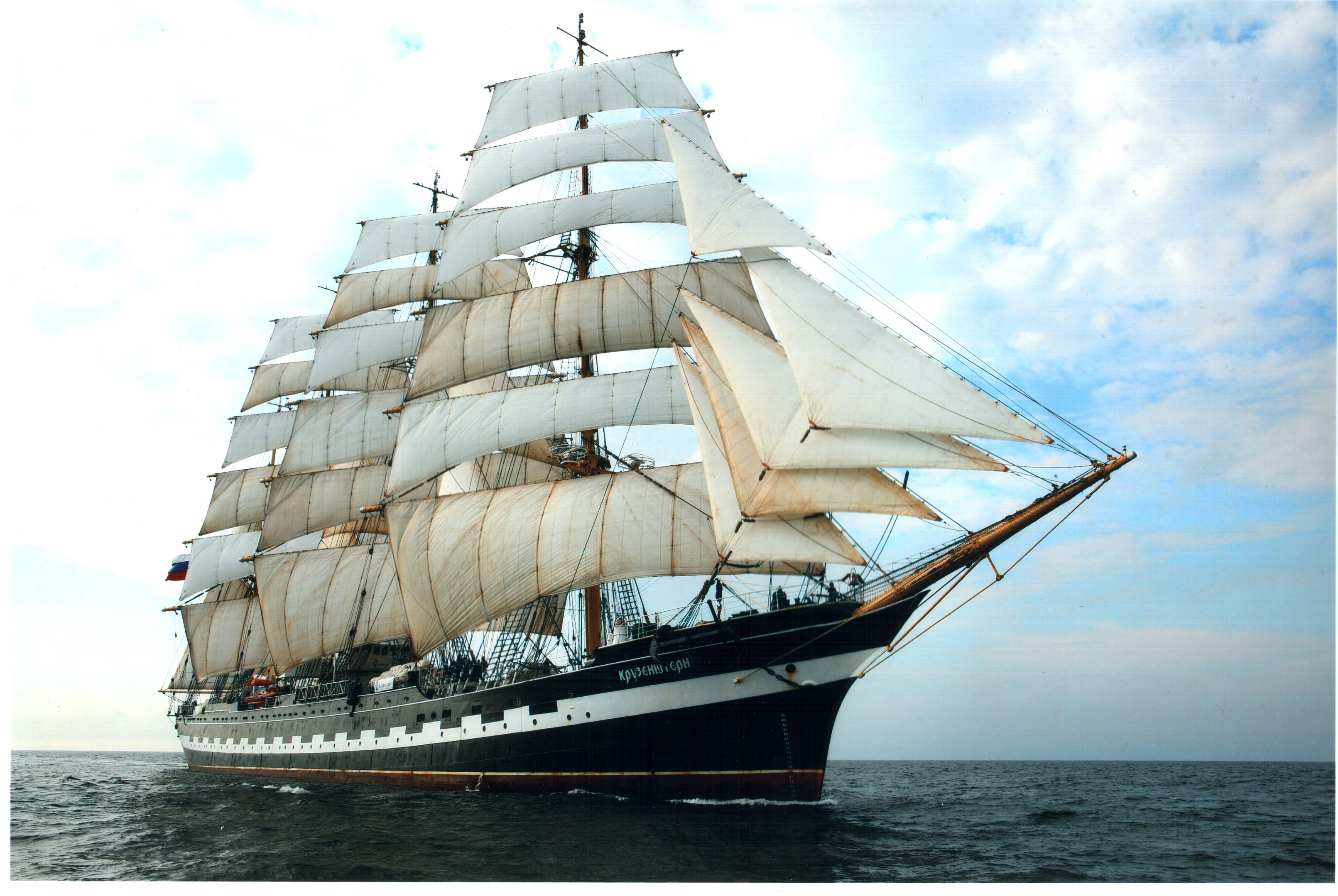 Żaglowiec to obok Sedova i Royal Clipperze największa taka jednostka na świecie. Kruzensztern ma ponad 114 metrów długości, około 14 metrów szerokości, a jego maszty sięgają na wysokość 56 metrów. Został zbudowany w 1926r. w stoczni J. C. Tecklenborg w Wessermünde. Pierwotnie pływał pod nazwą Padua (Padwa) jako żaglowiec towarowy. Przewoził saletrę z Chile do Europy. W 1946 roku został przekazany ówczesnemu Związkowi Socjalistycznych Republik Radzieckich jako odszkodowanie po II wojnie światowej. Obecnie pływa jako rosyjski statek szkolny. Od 1991 roku jego portem macierzystym jest Kaliningrad.