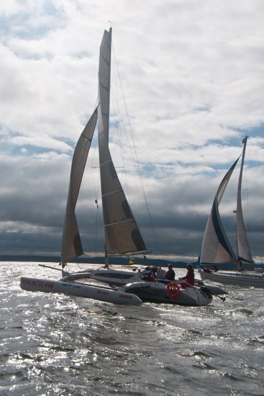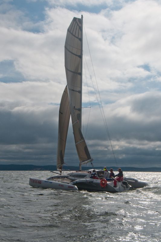 Z wiatrem, nawet silnym płynie się po prostu szybko, natomiast pod wiatr, a tak było w wyścigu Kołobrzeg – Dziwnów mamy do czynienia z kursem na wiatr i pod falę. Słuszna decyzja zawrócenia podjęta przez kapitanów „Nadira” i „Borne on The Wind”, to oszczędzanie naszego najstarszego jachtu, oraz oczywista wybitnie nie sprzyjająca pogada dla trimarana.