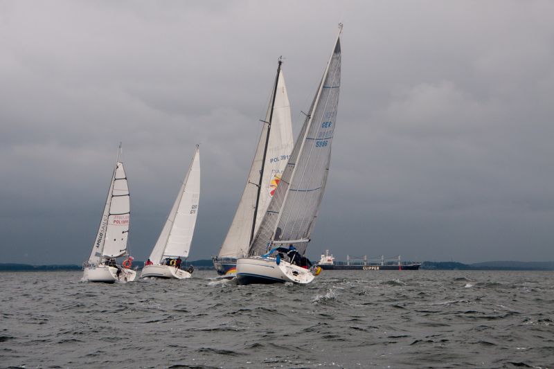 Jachty zostały podzielone na grupy: z pomiarem ORC, z pomiarem KWR, trzy grupy bez pomiarów Open oraz oldtimery i żeglarze samotni. Taki podział to również tradycja tych regat. Tak jak w tytule, często padał deszcz i mocno wiało z zachodu. Przeważały wiatry od 4 do 6 stopni w skali Beauforta. Jak mówi stare powiedzenie żeglarskie – z silnym wiatrem żeglarz da radę a z flautą nie popłynie. Warunki były bardzo dynamiczne. Wiele żagli i innych elementów osprzętu uległo uszkodzeniom, kilka jachtów musiało zawrócić podczas drugiego wyścigu do Kołobrzegu.
