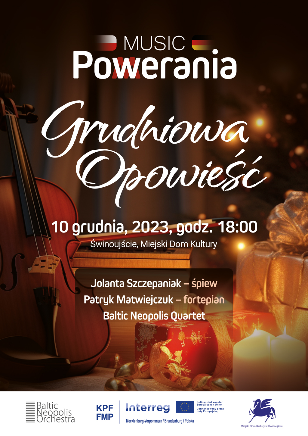 „Grudniowa opowieść” to propozycja dla osób, które radosny czas oczekiwania na Święta Bożego Narodzenia chcą wypełnić piękną muzyką. Jolanta Szczepaniak (śpiew), Patryk Matwiejczuk (fortepian) i Baltic Neopolis Quartet zaprezentują na scenie Miejkiego Domu Kultury w Świnoujściu wyjątkowe kameralne dzieła oraz zimowe i świąteczne utwory.