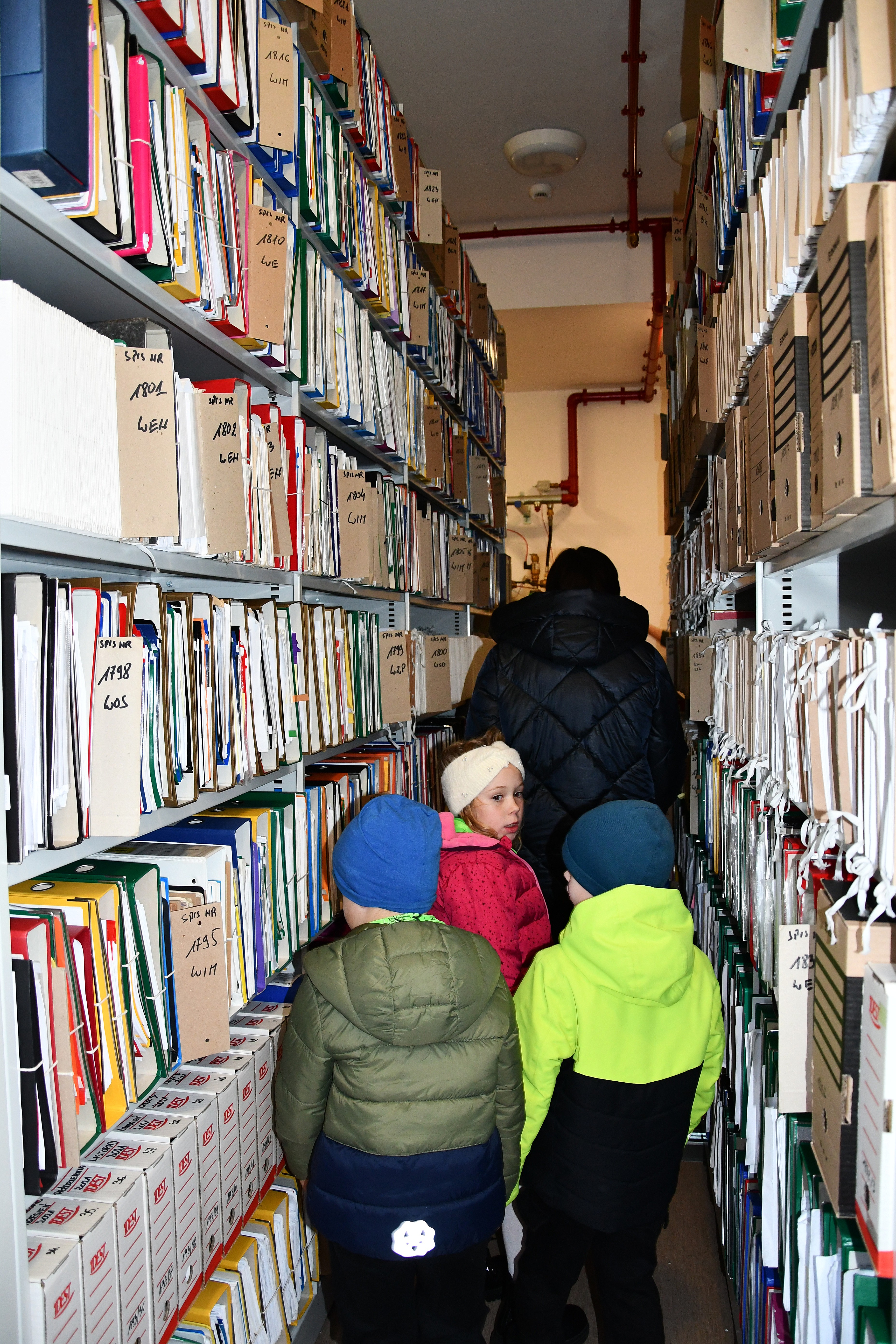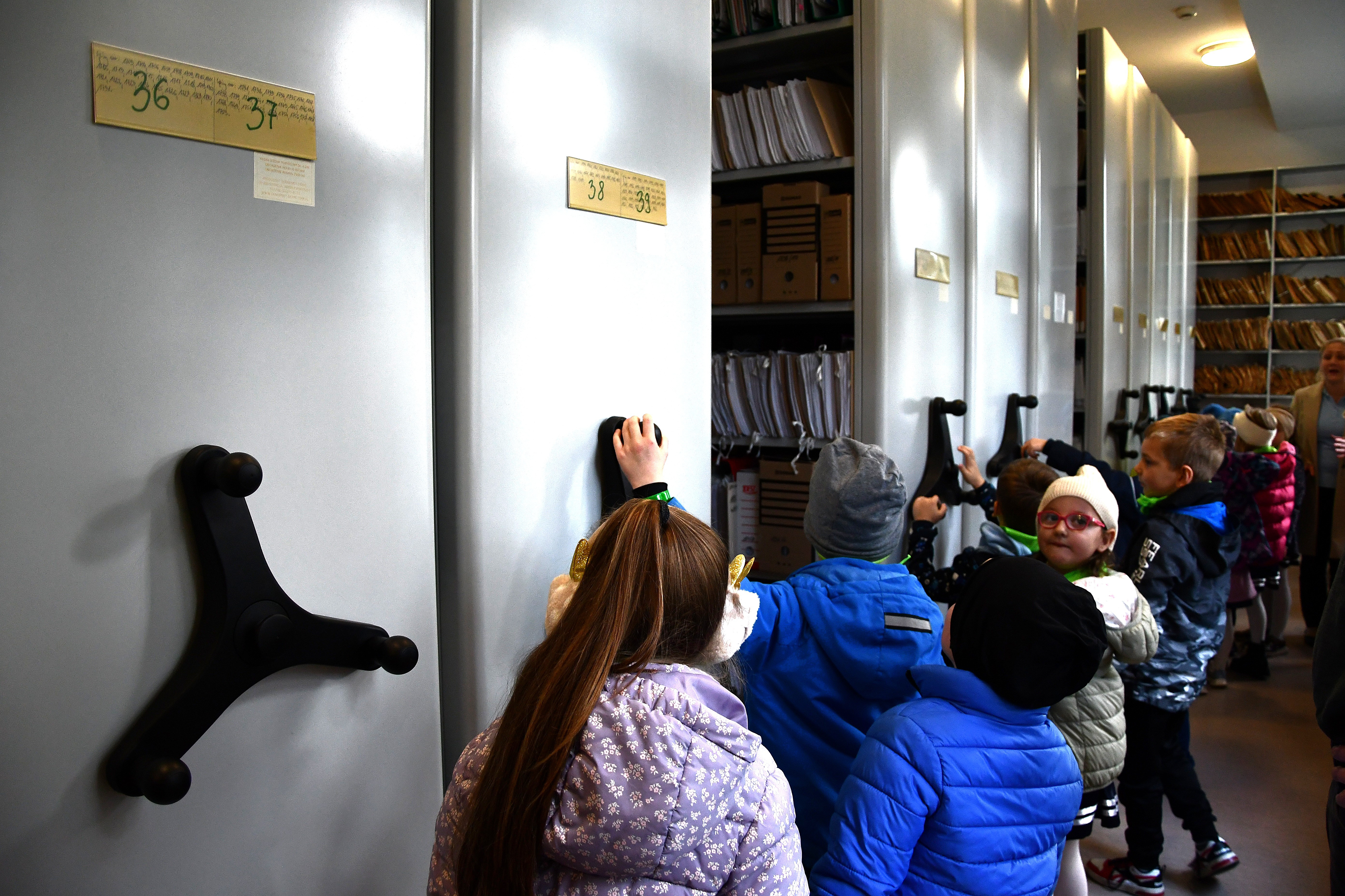 Na zakończenie sześciolatki odwiedziły Miejskie Archiwum. Tysiące dokumentów oraz historia miasta przechowywana w segregatorach wywarły na nich ogromne wrażenie. Przedszkolaki z entuzjazmem kręciły korbami, przesuwając w ten sposób ogromne regały – każdy z nich ważył aż dwie tony.